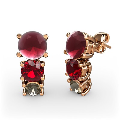 Kök yakut, garnet ve dumanlı kuvars 18 ayar rose altın küpe