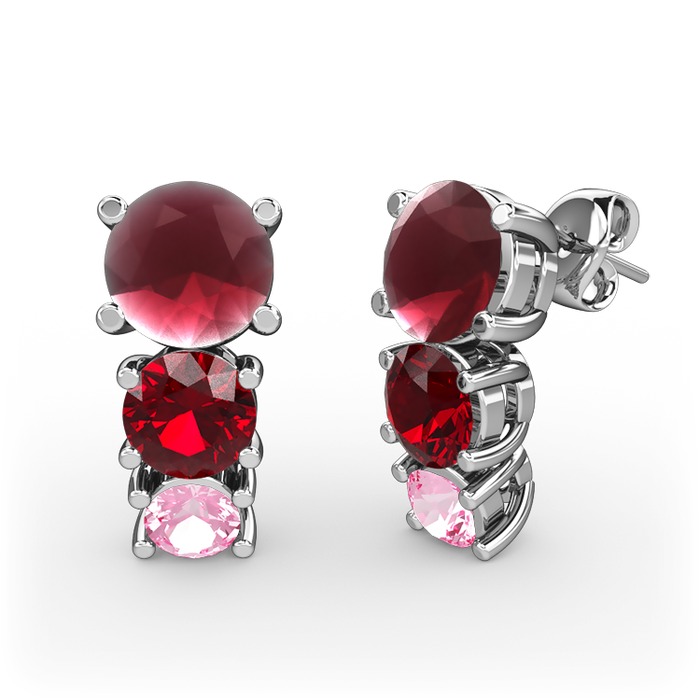 Kök yakut, garnet ve pembe kuvars 8 ayar beyaz altın küpe
