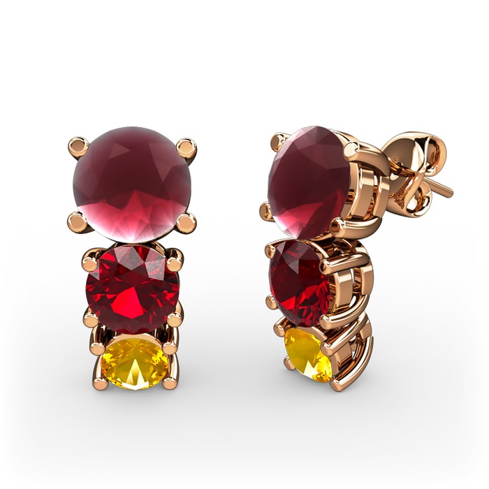 Kök yakut, garnet ve sitrin 18 ayar rose altın küpe