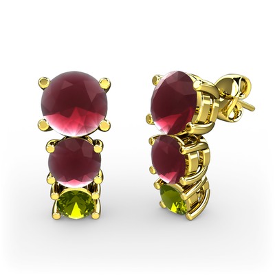 Kök yakut ve peridot 925 ayar altın kaplama gümüş küpe