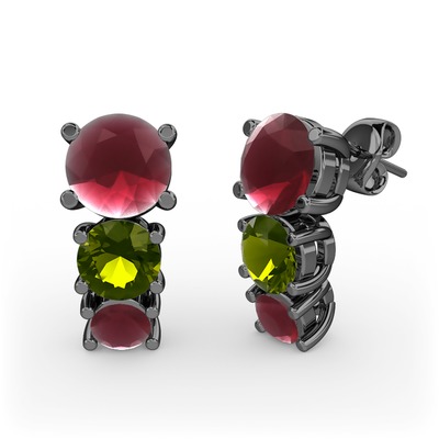 Kök yakut ve peridot 925 ayar siyah rodyum kaplama gümüş küpe