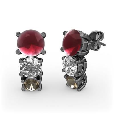 Kök yakut, pırlanta ve dumanlı kuvars 925 ayar siyah rodyum kaplama gümüş küpe (0.48 karat)