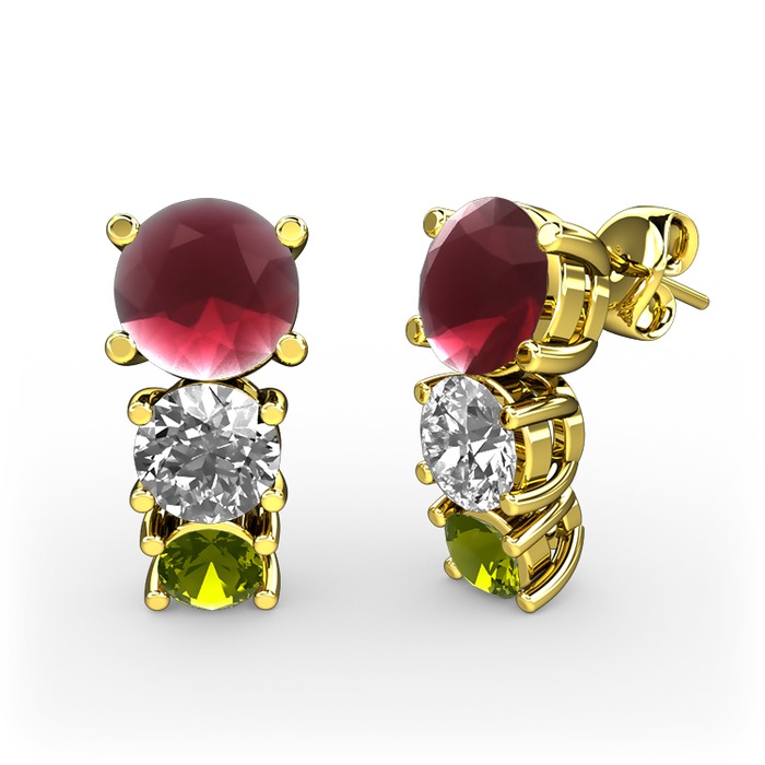 Kök yakut, pırlanta ve peridot 14 ayar altın küpe (0.48 karat)