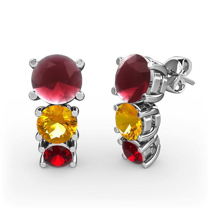 Kök yakut, sitrin ve garnet 8 ayar beyaz altın küpe
