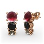 Kök yakut, siyah zirkon ve dumanlı kuvars 8 ayar rose altın küpe