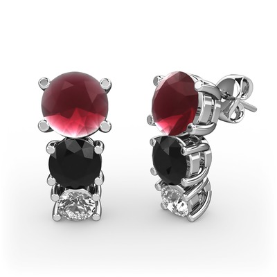 Kök yakut, siyah zirkon ve pırlanta 8 ayar beyaz altın küpe (0.22 karat)