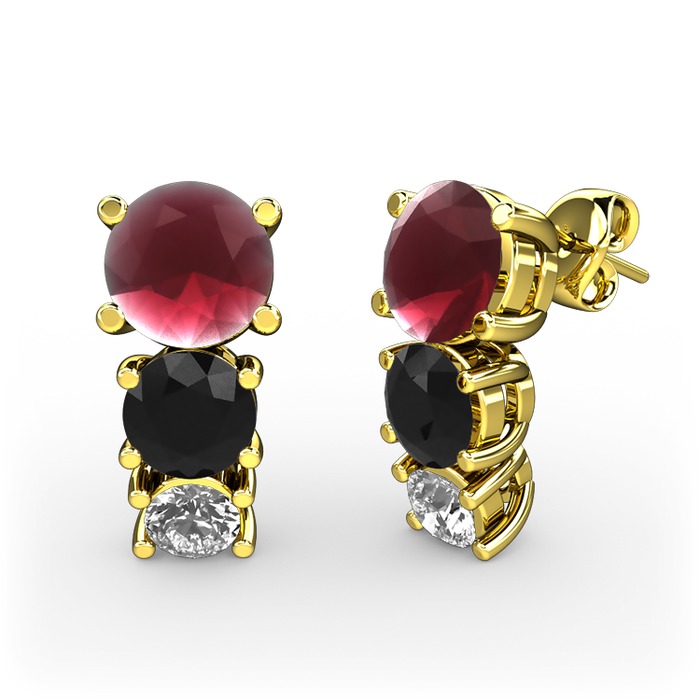 Kök yakut, siyah zirkon ve pırlanta 925 ayar altın kaplama gümüş küpe (0.22 karat)