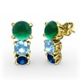 Kök zümrüt, akuamarin ve lab safir 925 ayar altın kaplama gümüş küpe