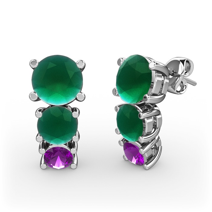 Kök zümrüt ve ametist 14 ayar beyaz altın küpe