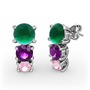 Kök zümrüt, ametist ve pembe kuvars 14 ayar beyaz altın küpe