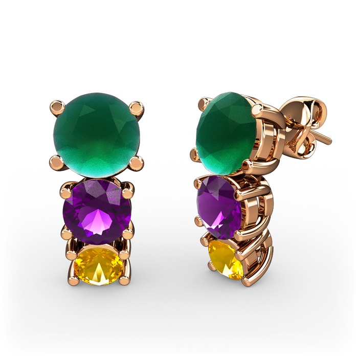 Kök zümrüt, ametist ve sitrin 18 ayar rose altın küpe