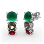 Kök zümrüt, dumanlı kuvars ve garnet 8 ayar beyaz altın küpe