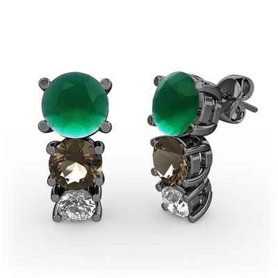 Kök zümrüt, dumanlı kuvars ve swarovski 925 ayar siyah rodyum kaplama gümüş küpe