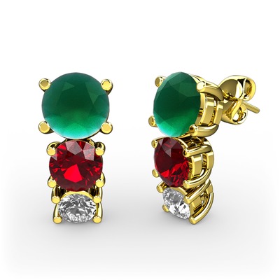 Kök zümrüt, garnet ve swarovski 18 ayar altın küpe