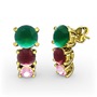 Kök zümrüt, kök yakut ve pembe kuvars 14 ayar altın küpe
