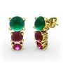 Kök zümrüt, kök yakut ve rodolit garnet 18 ayar altın küpe