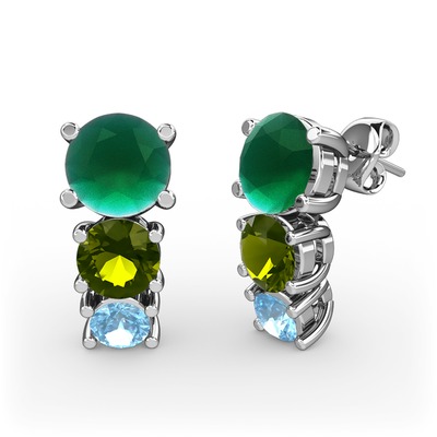 Kök zümrüt, peridot ve akuamarin 8 ayar beyaz altın küpe