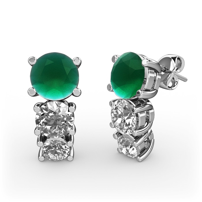 Kök zümrüt, pırlanta ve beyaz zirkon 18 ayar beyaz altın küpe (0.48 karat)