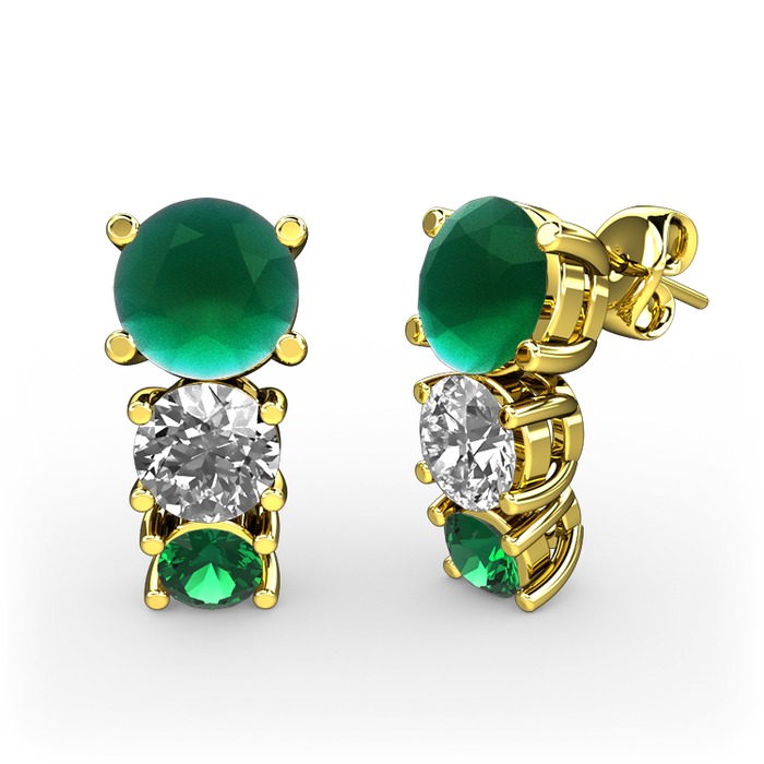 Kök zümrüt, pırlanta ve yeşil kuvars 14 ayar altın küpe (0.48 karat)