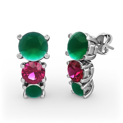 Kök zümrüt ve rodolit garnet 8 ayar beyaz altın küpe