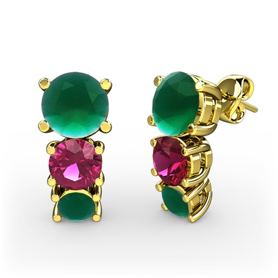 Kök zümrüt ve rodolit garnet 925 ayar altın kaplama gümüş küpe
