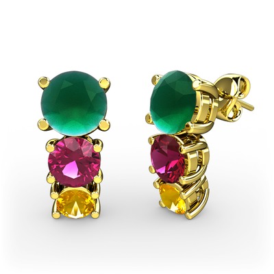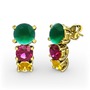 Kök zümrüt, rodolit garnet ve sitrin 14 ayar altın küpe
