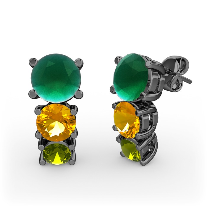 Kök zümrüt, sitrin ve peridot 925 ayar siyah rodyum kaplama gümüş küpe