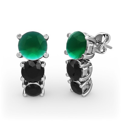 Kök zümrüt ve siyah zirkon 14 ayar beyaz altın küpe