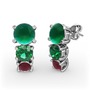 Kök zümrüt, yeşil kuvars ve kök yakut 8 ayar beyaz altın küpe
