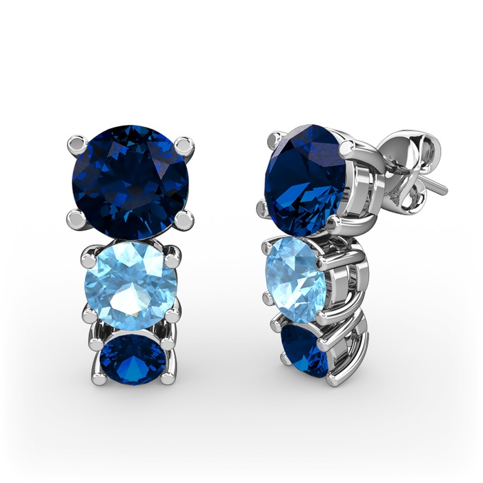 Lab safir ve akuamarin 14 ayar beyaz altın küpe