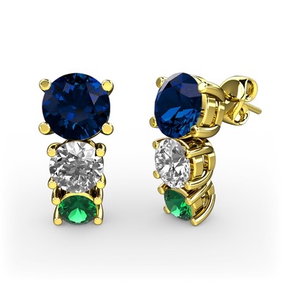 Lab safir, beyaz zirkon ve yeşil kuvars 14 ayar altın küpe