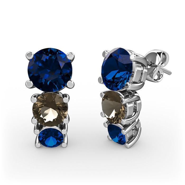 Lab safir ve dumanlı kuvars 14 ayar beyaz altın küpe