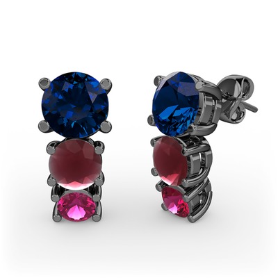 Lab safir, kök yakut ve rodolit garnet 925 ayar siyah rodyum kaplama gümüş küpe