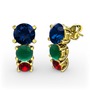 Lab safir, kök zümrüt ve garnet 8 ayar altın küpe