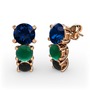 Lab safir, kök zümrüt ve siyah zirkon 14 ayar rose altın küpe