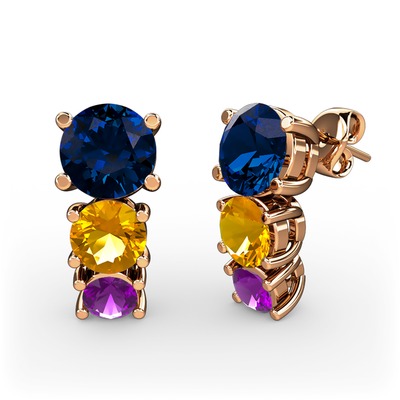 Lab safir, sitrin ve ametist 14 ayar rose altın küpe