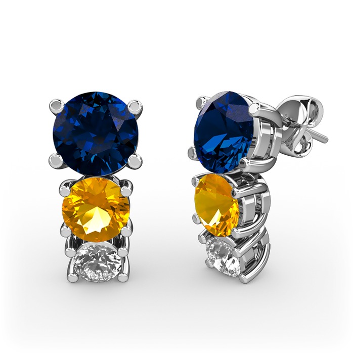 Lab safir, sitrin ve pırlanta 8 ayar beyaz altın küpe (0.22 karat)