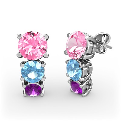 Pembe kuvars, akuamarin ve ametist 925 ayar gümüş küpe