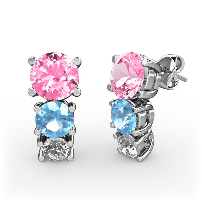 Pembe kuvars, akuamarin ve swarovski 18 ayar beyaz altın küpe