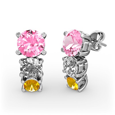Pembe kuvars, beyaz zirkon ve sitrin 14 ayar beyaz altın küpe