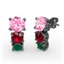 Pembe kuvars, garnet ve kök zümrüt 925 ayar siyah rodyum kaplama gümüş küpe