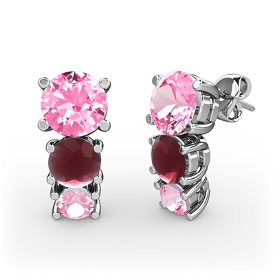 Pembe kuvars ve kök yakut 14 ayar beyaz altın küpe