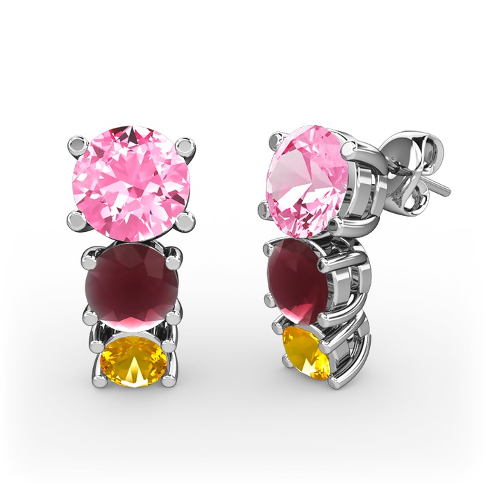 Pembe kuvars, kök yakut ve sitrin 925 ayar gümüş küpe