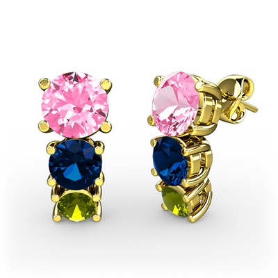 Pembe kuvars, lab safir ve peridot 18 ayar altın küpe