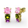 Pembe kuvars, peridot ve ametist 8 ayar altın küpe