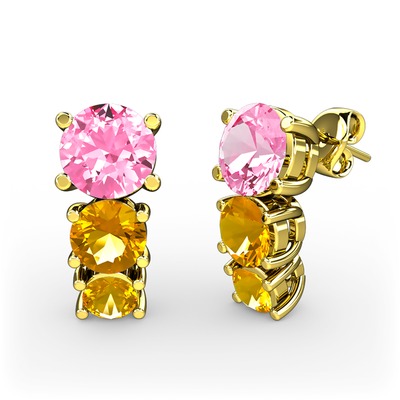 Pembe kuvars ve sitrin 18 ayar altın küpe