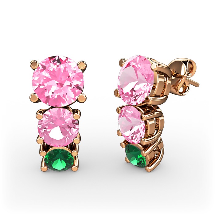 Pembe kuvars ve yeşil kuvars 18 ayar rose altın küpe