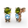Peridot, akuamarin ve dumanlı kuvars 18 ayar rose altın küpe