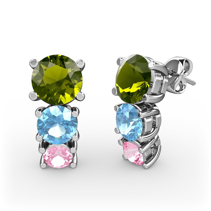 Peridot, akuamarin ve pembe kuvars 8 ayar beyaz altın küpe
