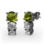 Peridot, beyaz zirkon ve pırlanta 925 ayar siyah rodyum kaplama gümüş küpe (0.22 karat)